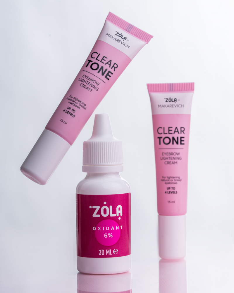 Mix the brow tint or lamination/lift solution with ZOLA Oxidizer 6% according to the manufacturer’s recommended ratio.